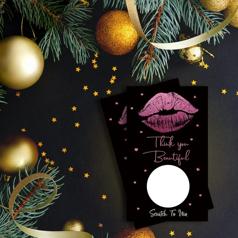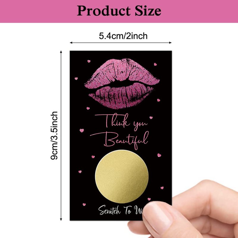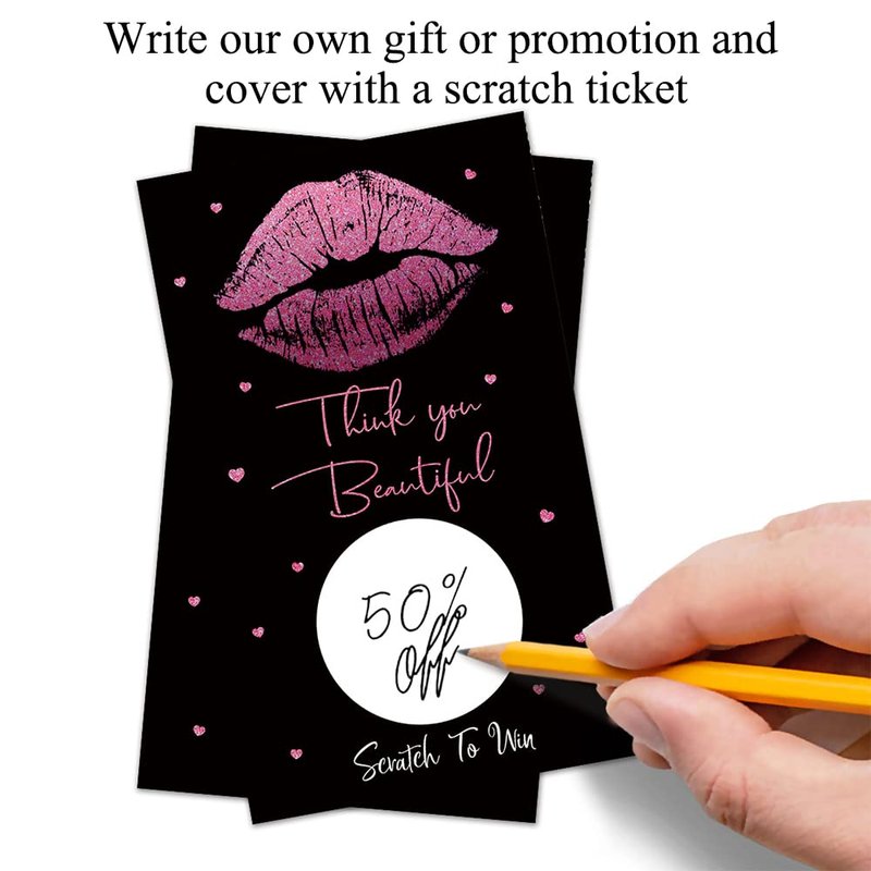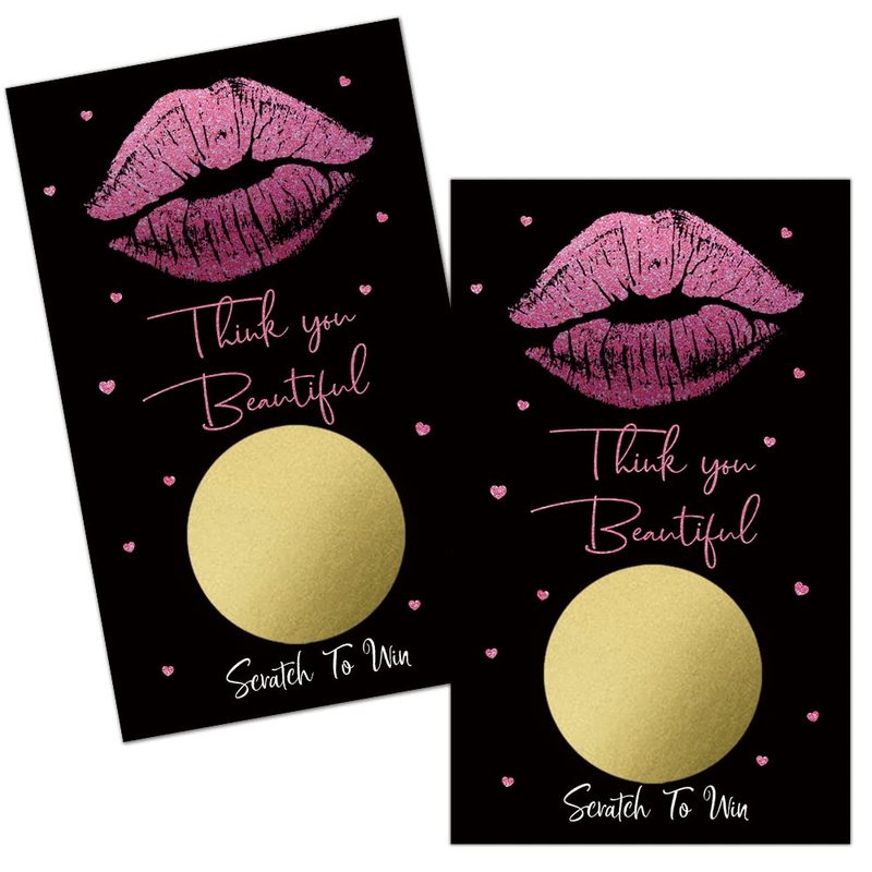 Haizct 50 Pack Thank You Blank Gift Certificate Scratch Off Cards for Small Business, Spa Beauty Makeup Hair Salon, Bridal Shower, Baby Shower, Country Wedding (Pink lip gloss), Gold,Pink-GK096