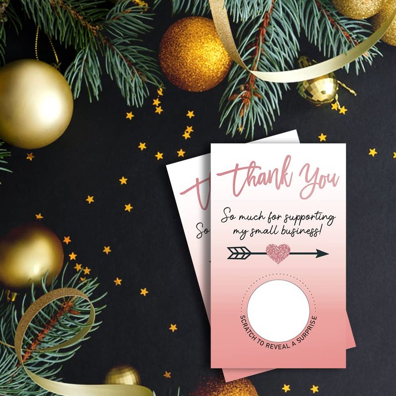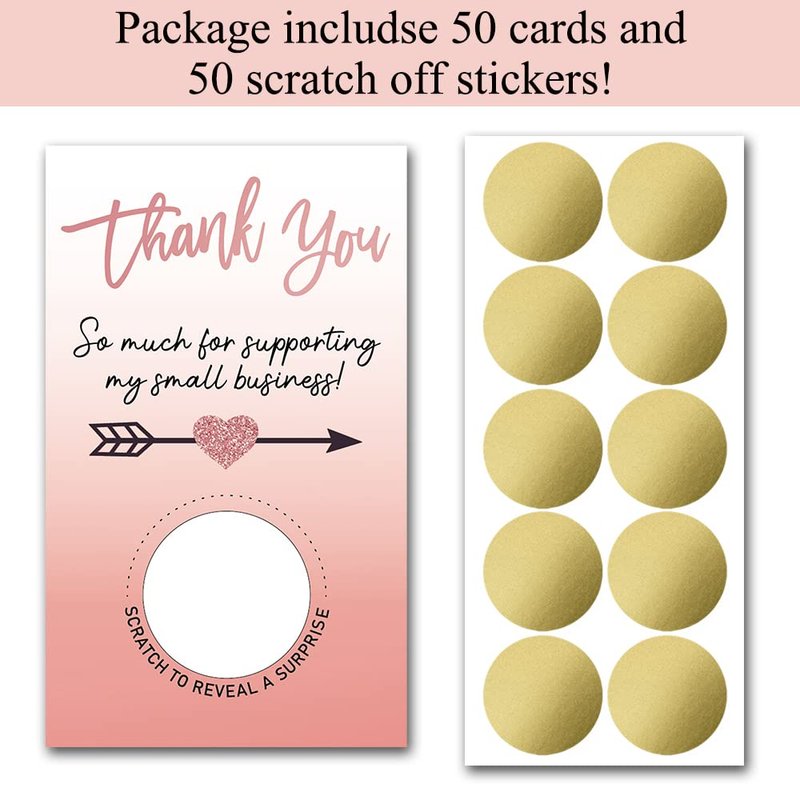 Haizct 50 Pack Thank You Blank Gift Certificate Scratch Off Cards for Small Business, Spa Beauty Makeup Hair Salon, Bridal Shower, Baby Shower, Country Wedding (Thank You CardD), Gold-GK089
