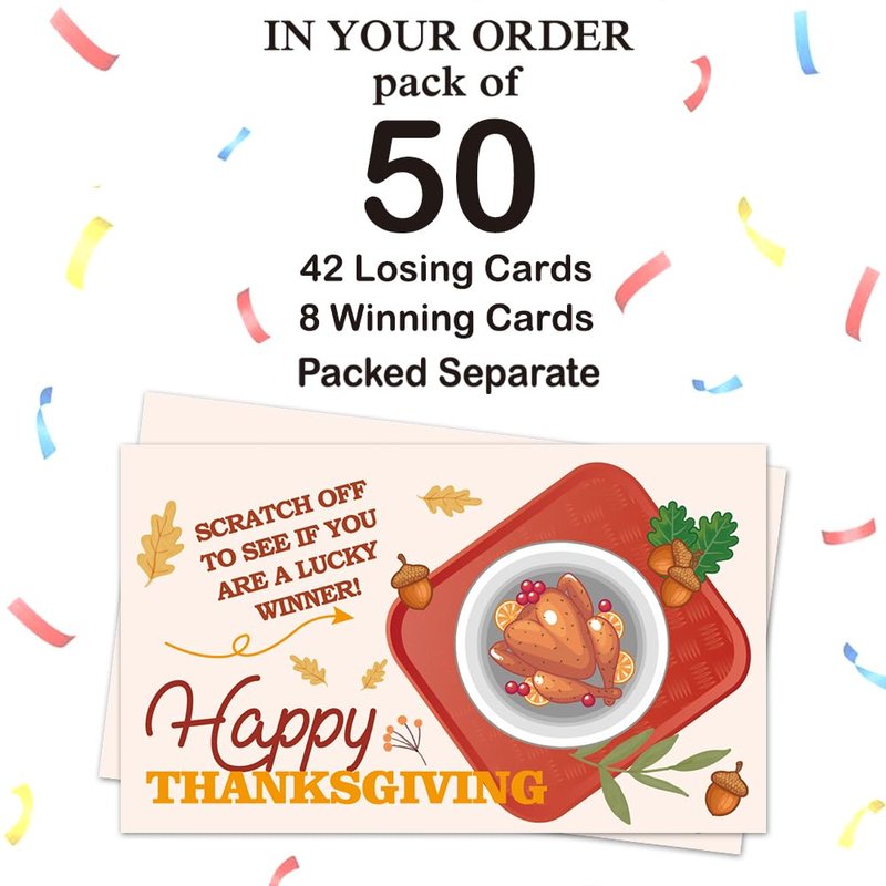 Haizct 50 Pack Thanksgiving Theme Scratch Off Games, Turkey Scratch Cards for Baby Shower Lottery Game Family Activities, Fall Thanksgiving Party Games, Thanksgiving Raffle Tickets, Baby Shower