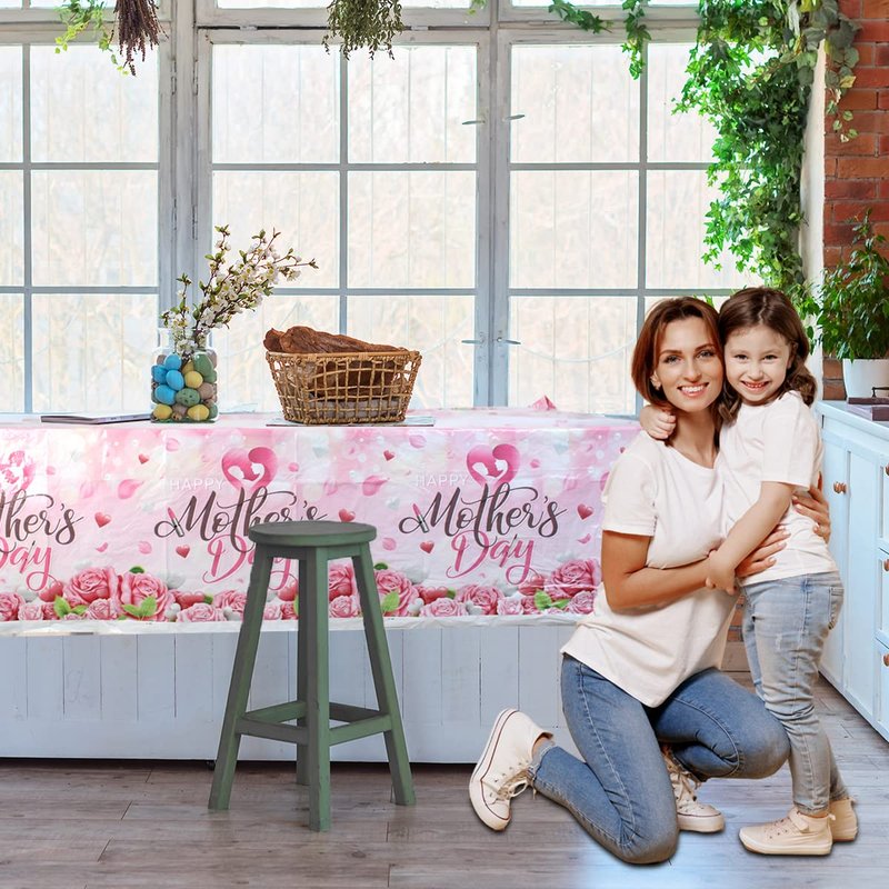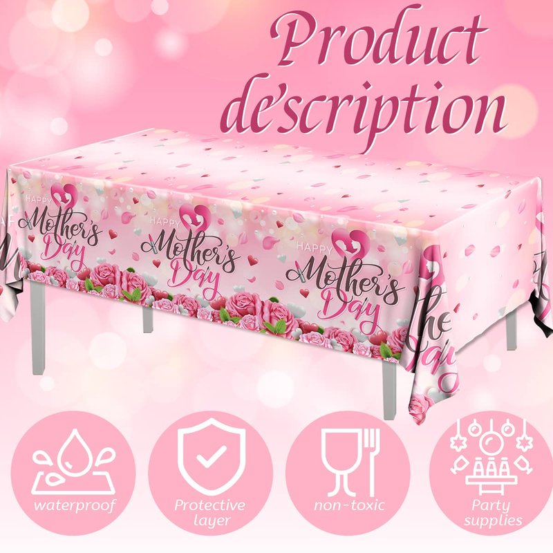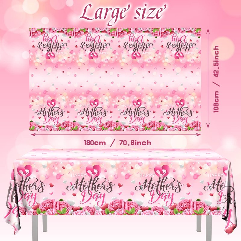 - 💗【APPLY TO】Pink mother’s day tablecloth decoration can be applied indoor or outdoor mother’s day party,mom theme party,birthday party. Suitable for dining table, tea table, banquet, picnic, BBQ, camping and everyday use.Make your party more attractive and interesting, and express thanks to your mom.