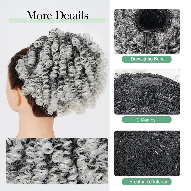 - 【Comfortable】: Afro Puff curly drawstring ponytail extensions adopt the comfortable and breathable inner net design, and no harass to the skin.The Size is Adjustable with Buckle Drawstring Inside,Fit for Almost People.