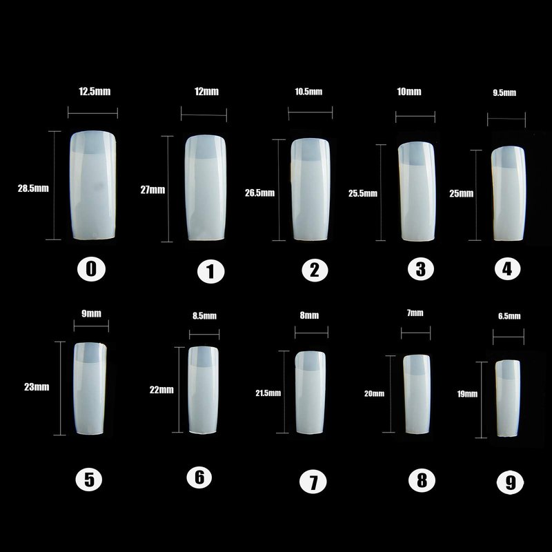 500PCS Nail Tips - 10 Different Sizes: