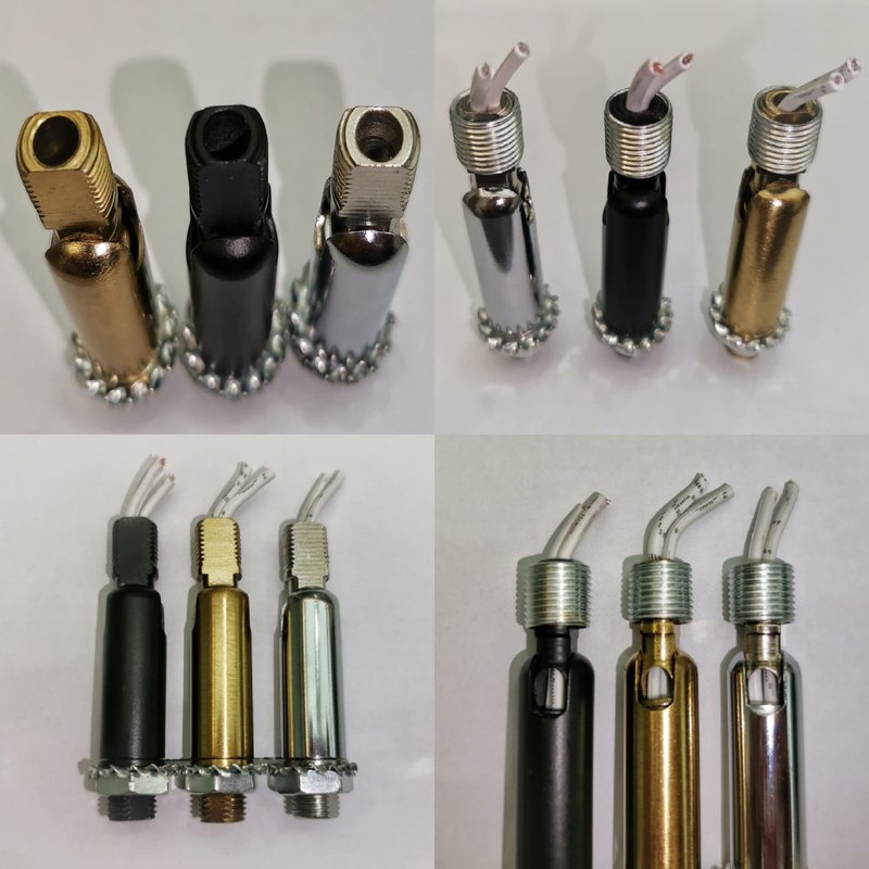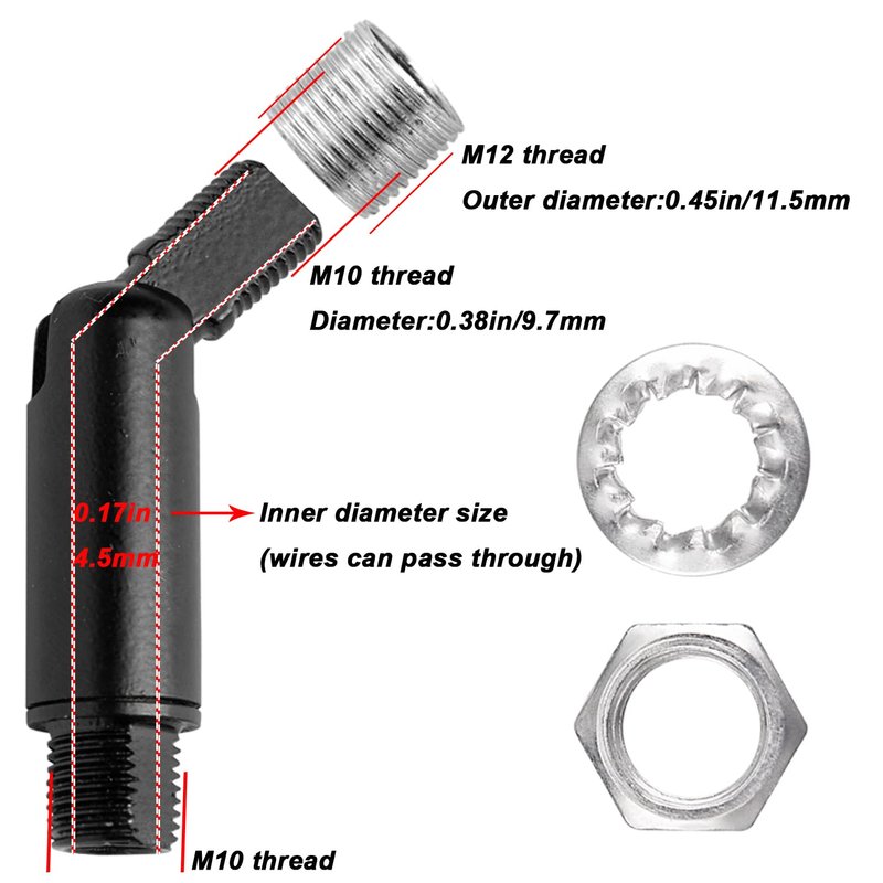 - Color:Black. 3 COLORS AVAILABLE: Brass, Black and Nickel,Suitable for the pendant lights and chandeliers. The adapter can be adapted to M10 or M12 threads by installing or removing the M12 threaded pipe. M10 size: 0.38in/9.7mm .M12 size: 0.45in/11.5mm.The inside diameter of the adapter is 0.17in/4.5mm and the wires can pass through it