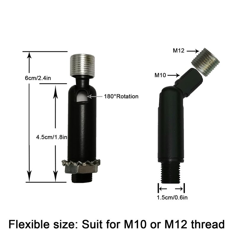 - Please check the thread size before buying to make sure it fits your product.Product size: Dia 0.6* H 2.4inch , 180°rotatable.Made of high quality metal, load-bearing capacity up to 15kg