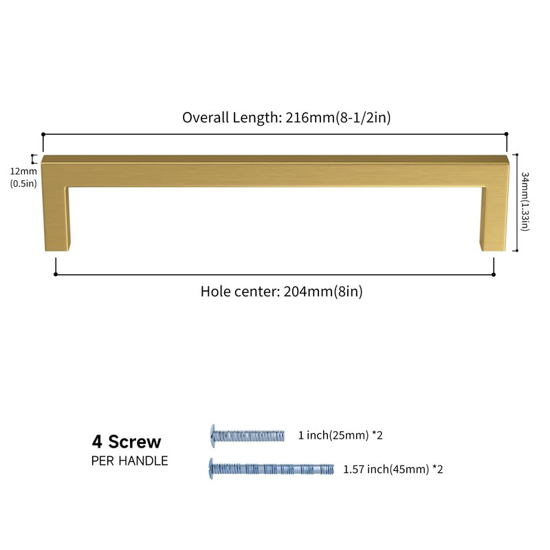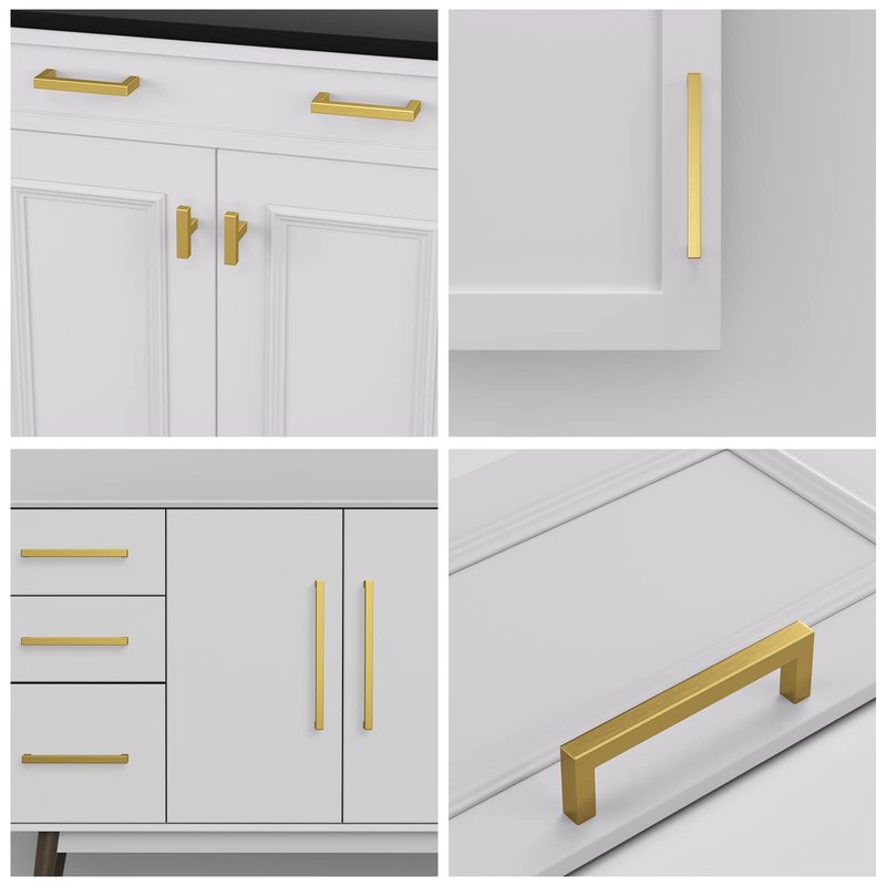 Haliwu 10 Pack Gold Drawer Pulls 8 inch, Brass Cabinet Pulls Gold Handles for Cabinet Gold Kitchen Hardware for Cabinets Brushed Gold Kitchen Handles