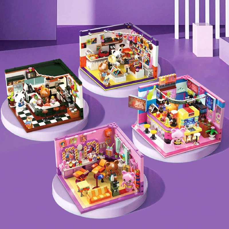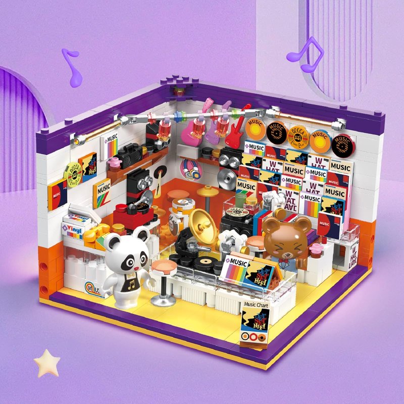 - 🏰【Build Creative Bear Record Store Scenes】: 554 pcs building bricks Mini size - 2/3 of the regular size. More challenging than regular sizes. Easter basket toy building block. Build a visually appealing coffee shop house with the toy building set. In vibrant purple and yellow colors, creating a lively atmosphere. Not a finishd product. Needs to be assembled. More details for you to discover.