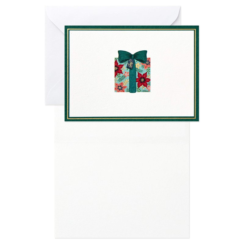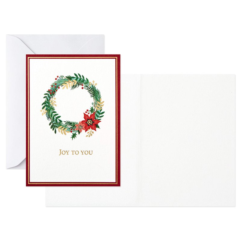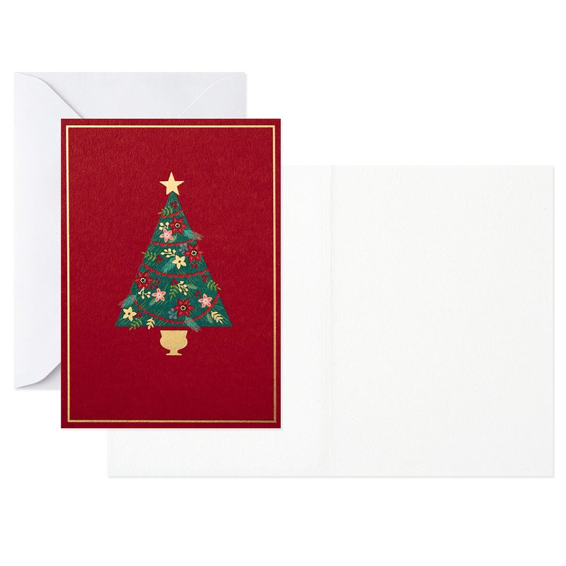 - Holiday cards feature six beautiful designs (8 of each design) accented with metallic foil, including a wreath, Christmas tree, and wrapped present. Blank inside, each one has plenty of room for your own personalized holiday wish.