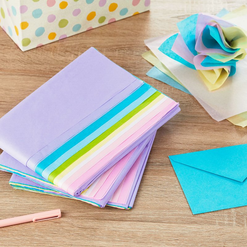 - Pretty pastel colors of tissue paper add the perfect accent to your gift any time of year and are a gift-wrapping staple to always have on hand.