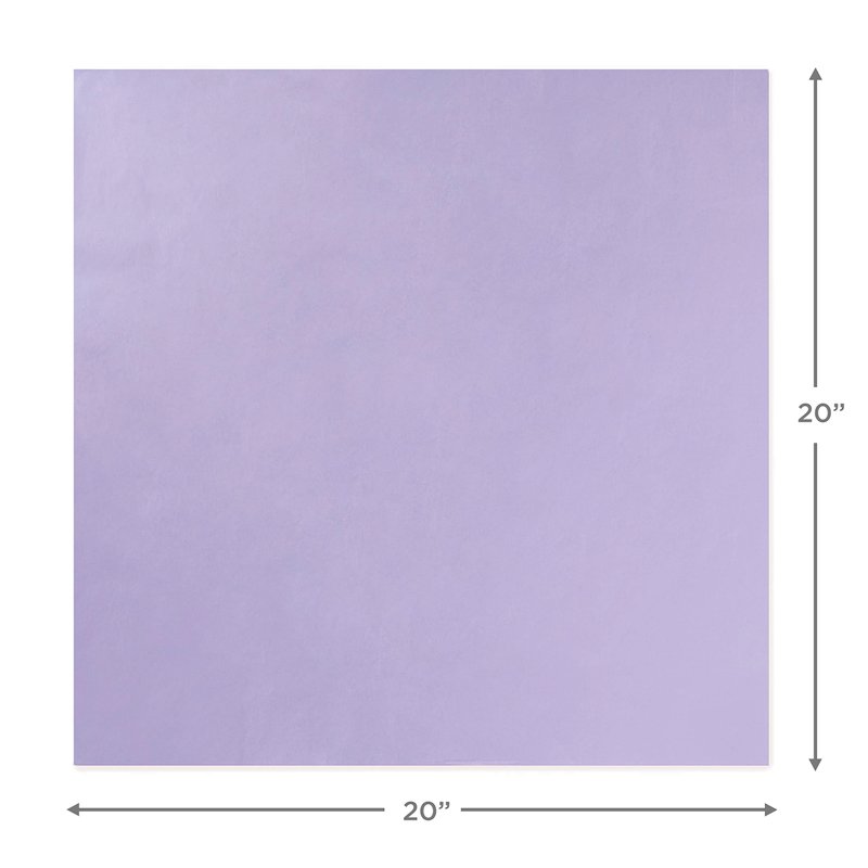 - Each sheet of tissue paper measures 20" long x 20" wide. Purchase includes 120 sheets (15 sheets each of lavender, turquoise, light blue, green, yellow, white, light pink, and hot pink).