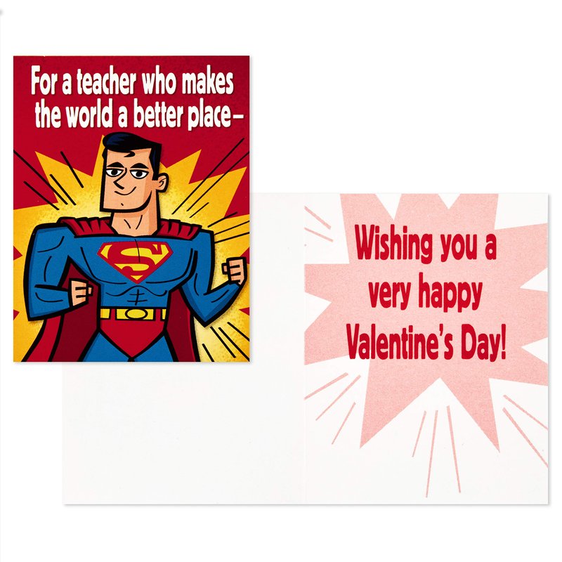 - Cool Valentine's Day card pack contains 32 perforated, tear-apart cards and one teacher card with fun designs featuring Wonder Woman, Flash, Batman, and Superman.