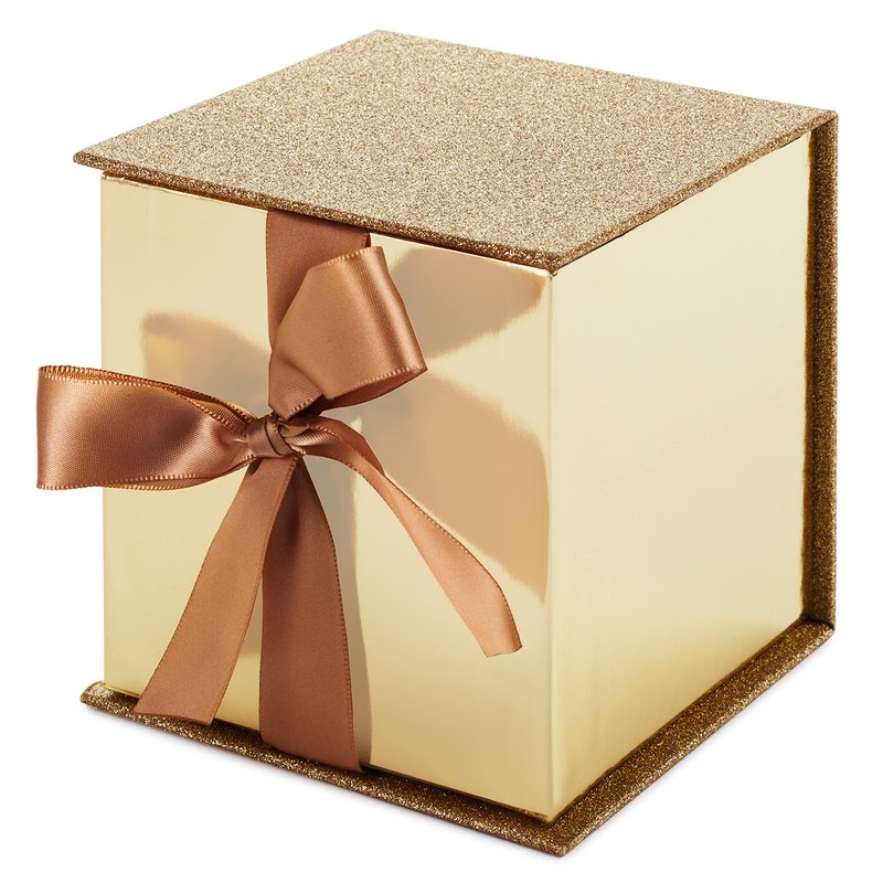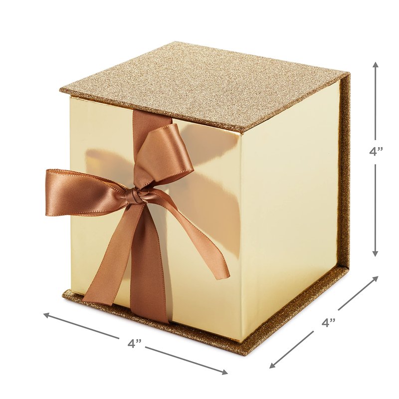 Hallmark Small Gift Box with Bow and Shredded Paper Fill (Gold Signature 4 inch Gift Box with Glitter) for Weddings, Graduations, Bridal Showers, Anniversaries, All Occasion