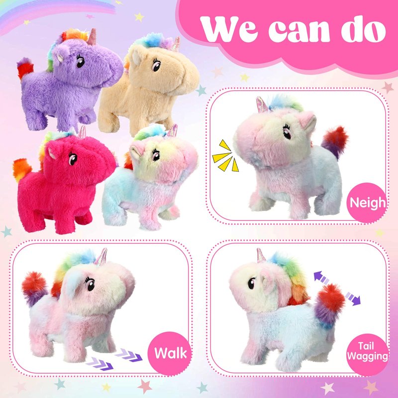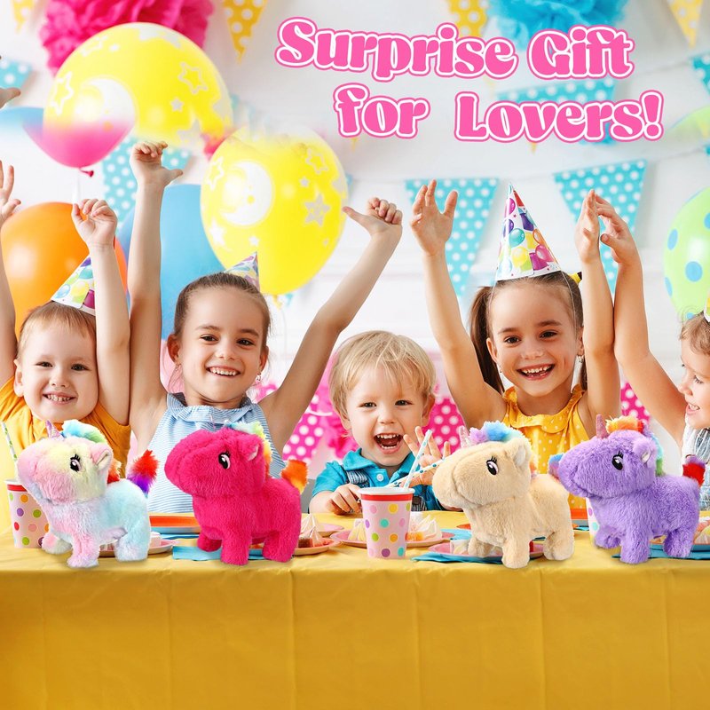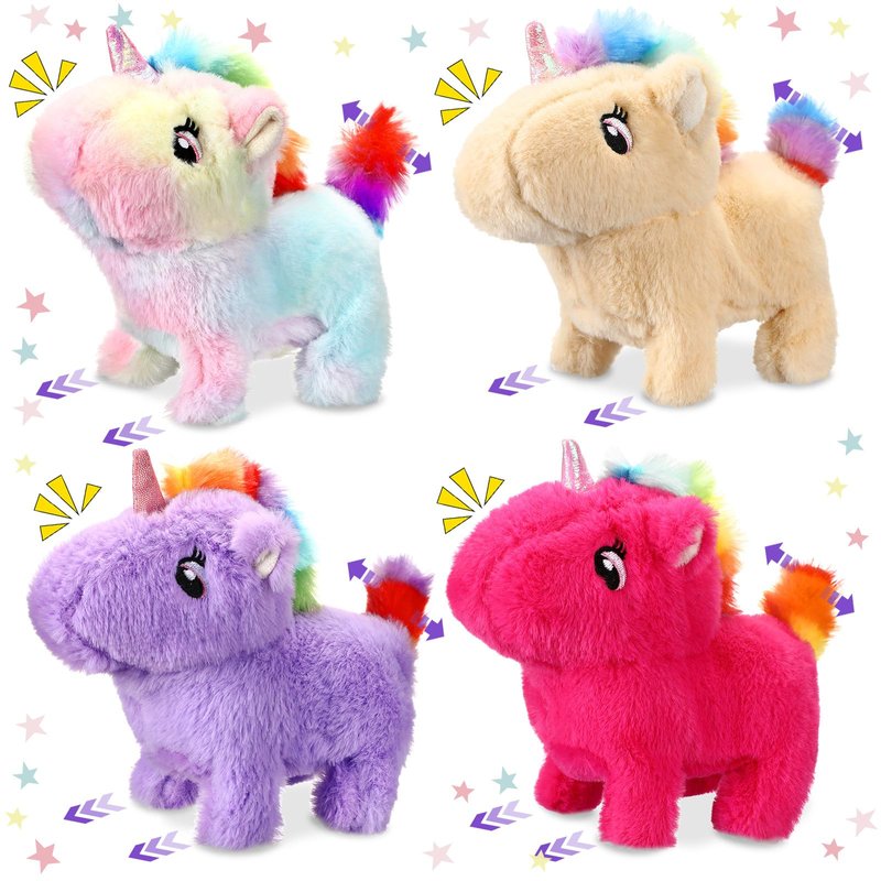 Halloscume 4 Pcs Interactive Electronic Plush Unicorn Stuffed Animal Walking Barking and Wagging Tail Toys for Christmas Classroom Kids Birthday Gifts 7"