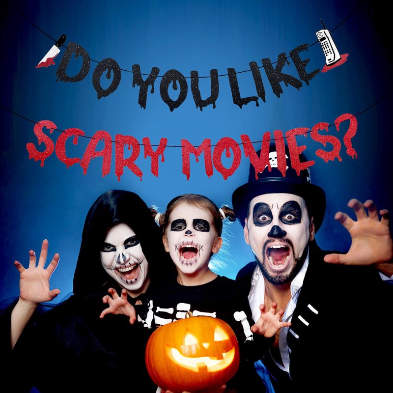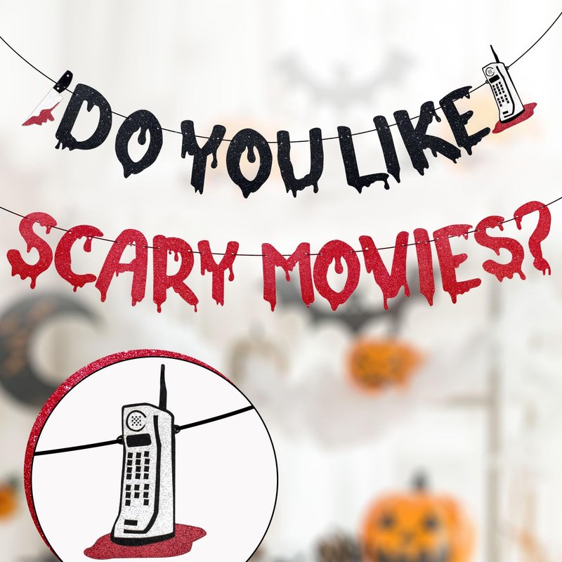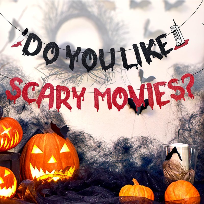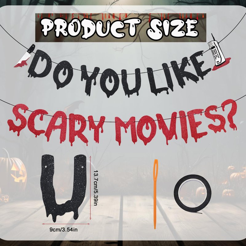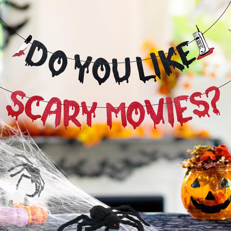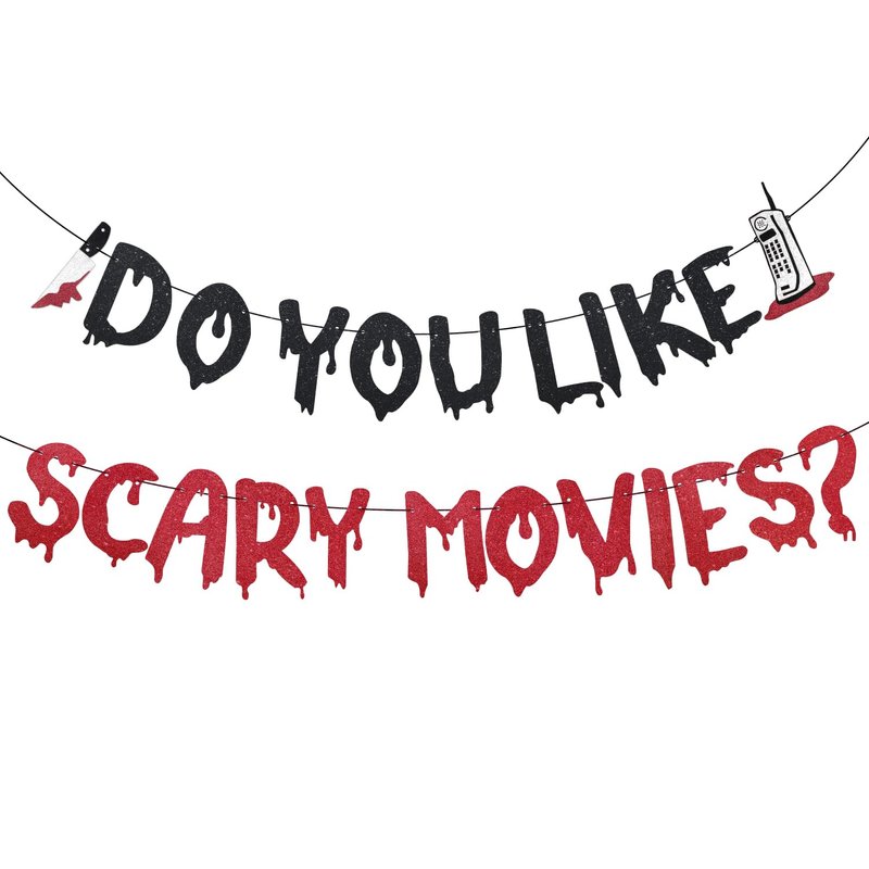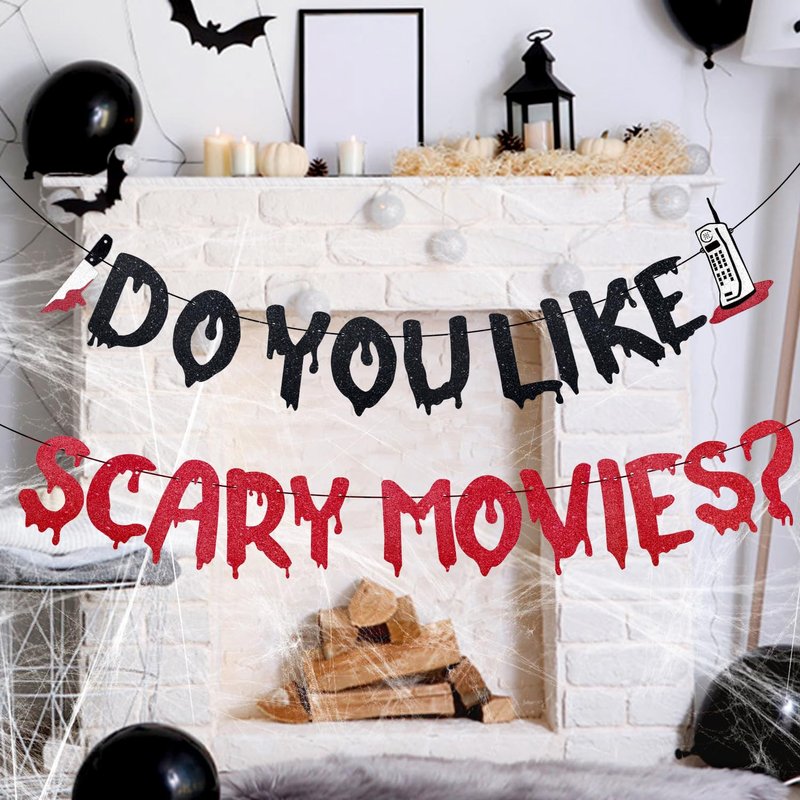 - Spooky Design: This Halloween banner featuring a black red glittery, eye-catching design with the phrase "Do You Like Scary Movies?", is sure to grab the attention of your guests and create a spooky atmosphere at your Halloween themed party.