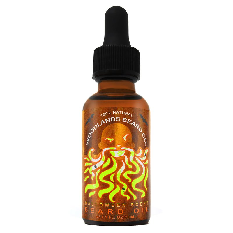 Halloween Scented Beard Oil with Nutmeg, Cinnamon, Clove, Cardamom, Orange and Ginger pumpkin spice scent is proudly made by hand in small batches in the U.S.A. This beard oil is formulated to keep your beard and mustache healthy, soft and easy to groom, while giving it a Halloween pumpkin spice aroma. Say goodbye to itching and beardruff by moisturizing and conditioning your beard hair and skin beneath. Use daily to get a majestic and irresistible Woodlands beard! Woodlands Beard Co. Halloween Scented Beard Oil is our special blend of Jojoba, Argan, Sweet Almond and Coconut oils, plus drops of Nutmeg, Cinnamon, Clove, Cardamom, Orange and Ginger essential oils for scent. We only use premium Grade A oils with no fillers, fragrances, additives, parabens or GMOs. Our products have never been tested on animals and are vegan-friendly. This special oil blend absorbs quickly and penetrates deeply, hydrating coarse beard hair and leaving it very manageable and relaxed while soothing and calming the skin beneath. Our oil is bottled in dark amber glass bottles which block UV light to keep oils potent and extend shelf life. Woodlands Beard Co. stands behind our beard oil. We believe you will love it. If you do not love it, we will provide a full refund.