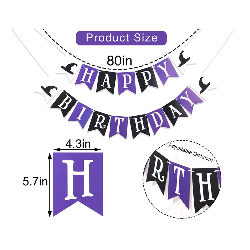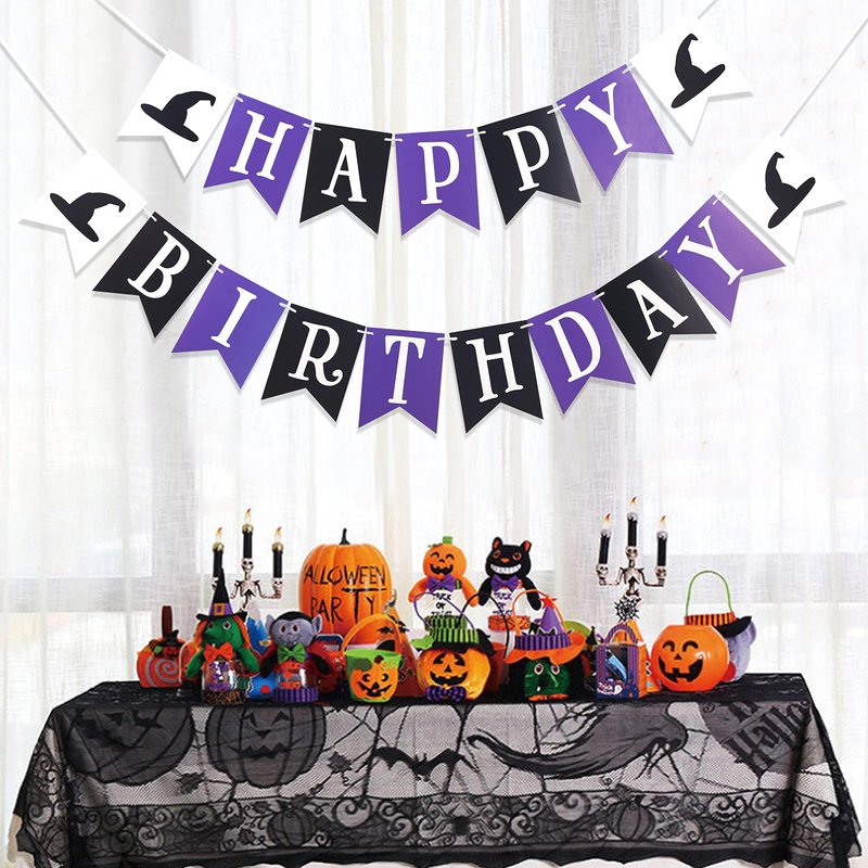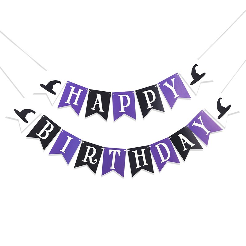 Halloween Birthday Banner - Halloween Birthday Party Decoration,witch Hat Banner,spooky Birthday Banner,black Purple Halloween Birthday Banner