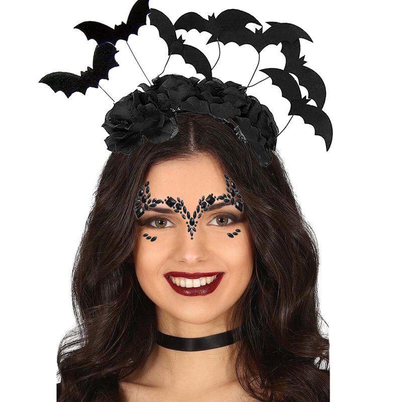 Halloween Black Bat Headband and Black Face Gem Bat Mask or Women Bat Halloween Dress Up Costume Accessories (Bat B)