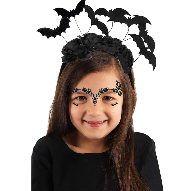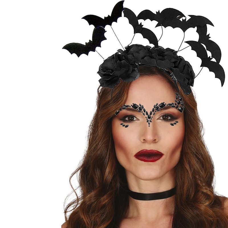 - Material:This Halloween headband is made of high-quality Fabric material, safe , soft and comfortable to wear, durable material can meet your needs for a long time.Bat costume face gems are made of rhinestone and acrylic diamond, very shiny and sparkling.