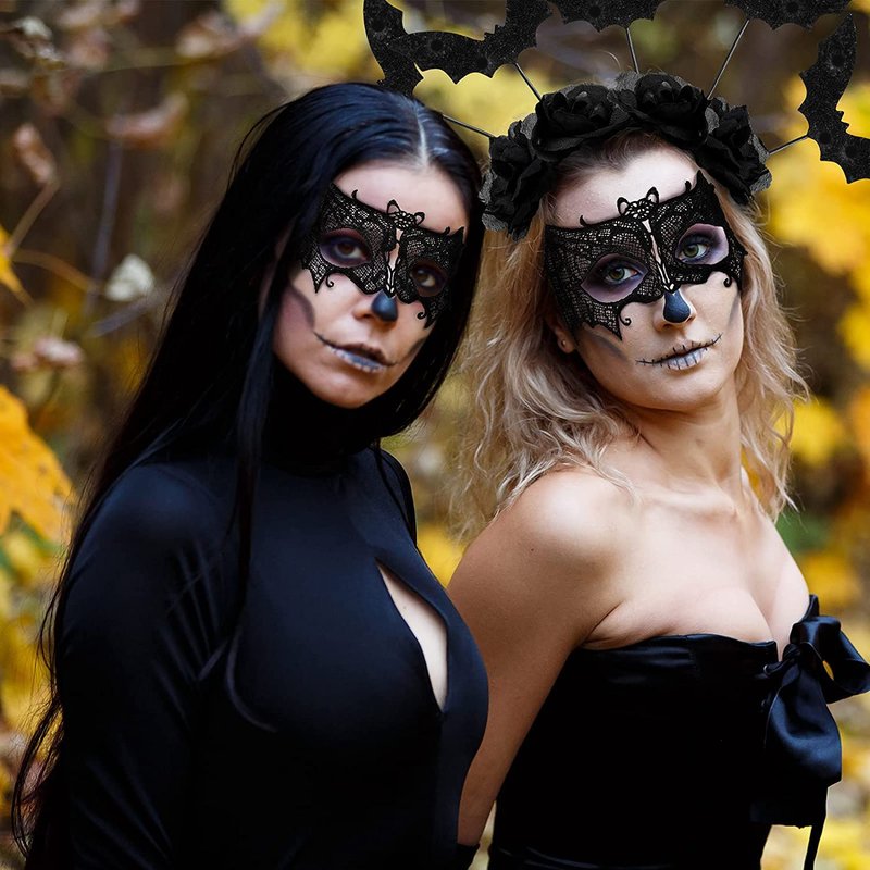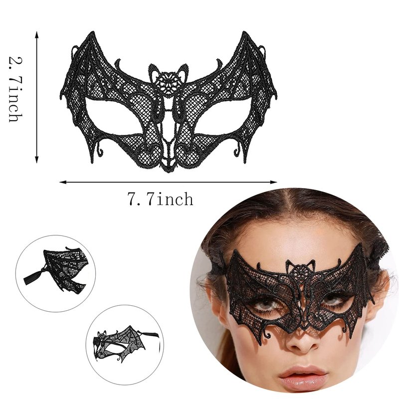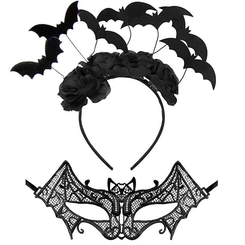 - Package includes: 1 piece of masquerade lace eye mask and 1 piece of Halloween black bat headband, both in black