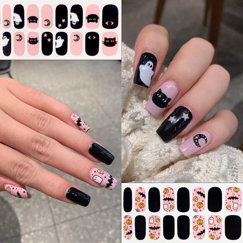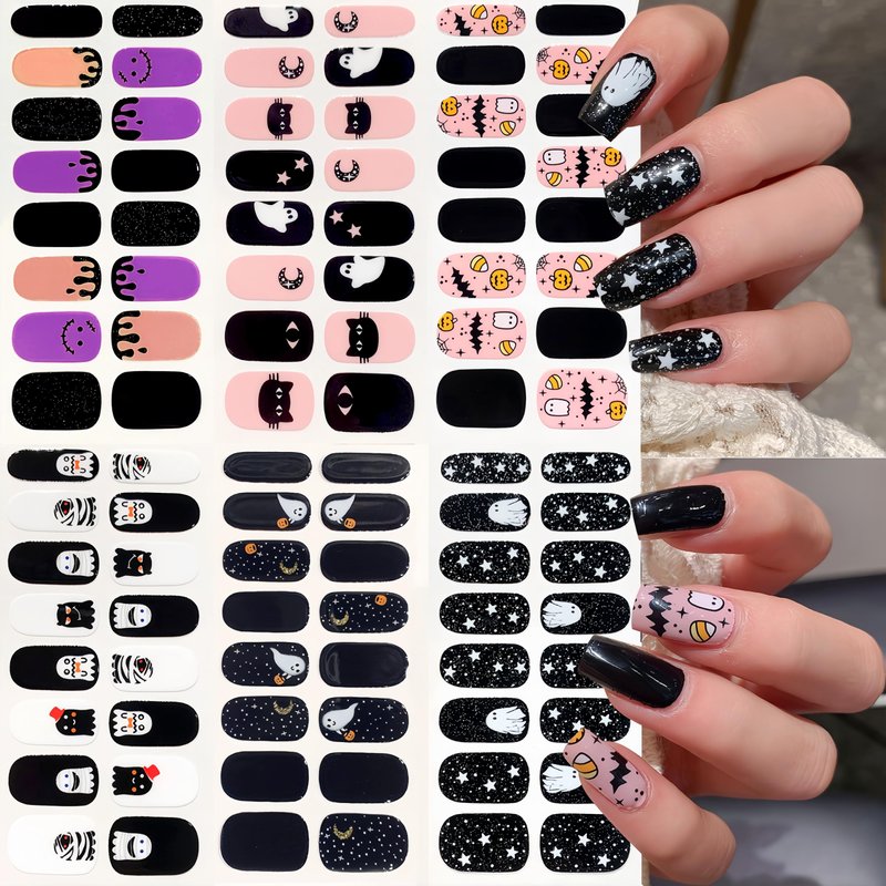 Halloween Cute Ghost Nail Wraps Full Stickers Nail Polish Strips, DIY Self-Adhesive Nail Art Glitter Decals Pumpkin Bat Ghost Web Cat Pattern with 2 Piece Nail Files for Party Decor Specification: Item Type: Halloween Ghost Gel Nails Wraps - Nail Polish Strips Color: As the picture shows Pattern: As the picture shows Quantity: (16 stickers/sheet)6 sheets Halloween cat nail stickers full nail wraps+2 pieces nail files Feature: 1.brand new 2.Quality material 3.Simple to use 4.No need to wait 5.Say goodbye to the troubles of nail polish How to Use : 1. Choose the bloody strip that best fits your nail size. 2. Peel the pumpkin strip off the backing film slowly and carefully. 3. Apply the candy strip on your nail with it's rounded edge against the cuticle. Then apply pressure gently over the entire surface. 4. Fold remaining glitter star ghost strip over the nail top. File off any remaining excess material in a gentle downward motion using the rough side of the file. 5. Finish. Remove: Wash hands in warm, soapy water and then gently peel off mummy strip from the side.