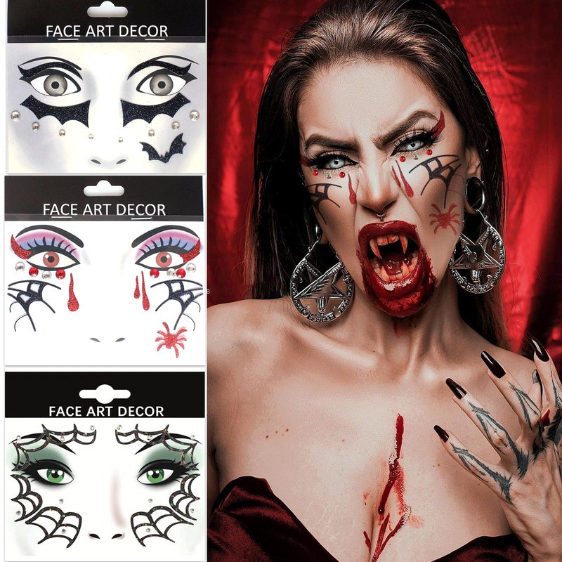 - 【Included 】The Set includes 3 sheets of temporary tattoo face stickers featuring elements such as spider webs and spooky bloodstains.