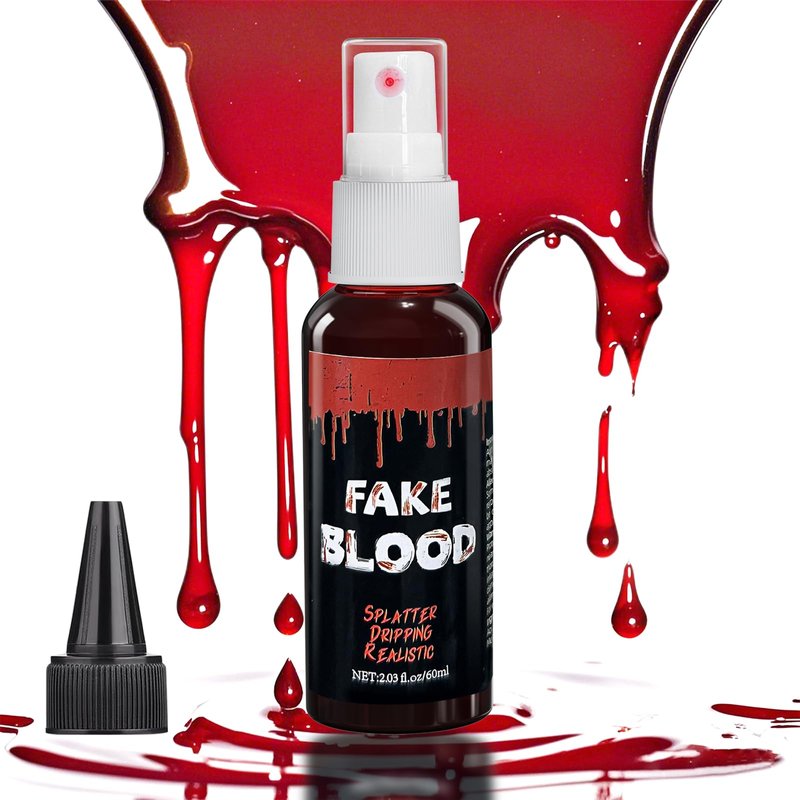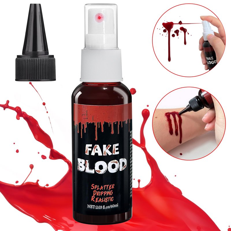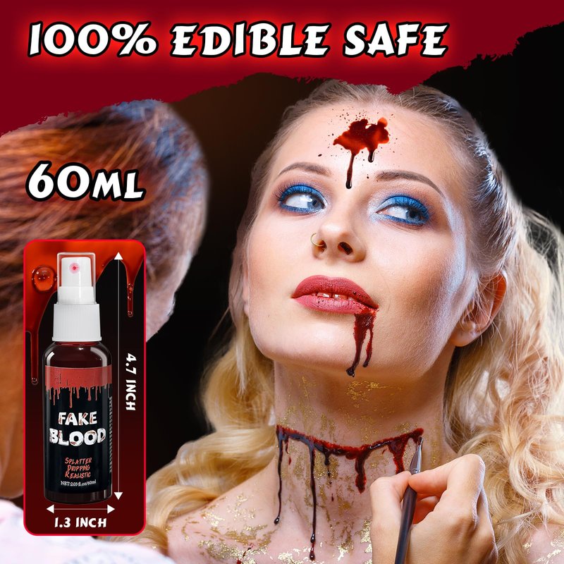 - Skin-Friendly Ingredients: The main ingredient is edible syrup, skin-friendly, non-irritating, can be sprayed on face and body, perfect for fake blood makeup, cuts and even wounds! Can be used in and around the mouth, but swallowing is not recommended.