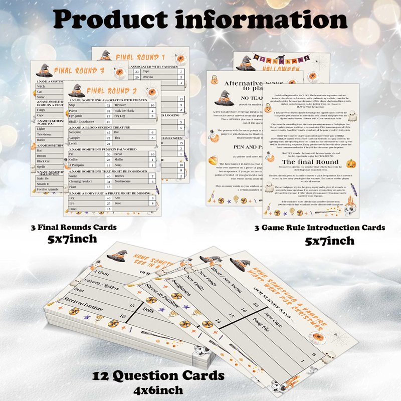 Halloween Friendly Feud Game, Family Feud Quiz, Feud Trivia Quiz Baby Shower Game for Family Activity (12 Question Cards & 3 Final Round Cards) Halloween Party Games Decorations Supplies-SG1