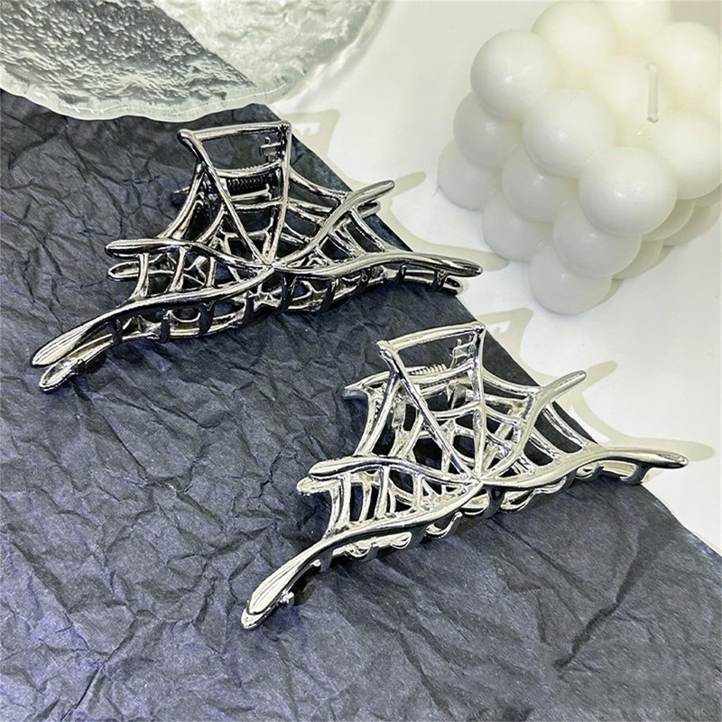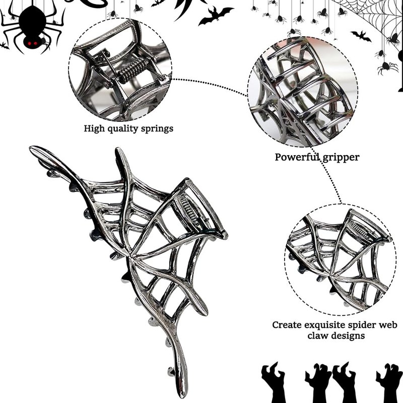 Halloween Hair Clips Silver & Black Hair Claw Clips Halloween Spider Web Shape Hair Barrette Metal Hair Jaw Clips Strong Hold Hair Accessories for Women 2PCS