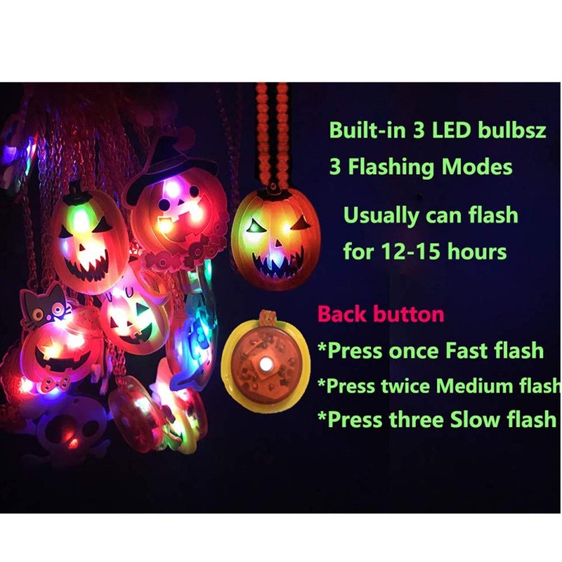 - Halloween LED Necklace - 15 pcs of shining kids necklace with various cute Halloween patterns and different colors to meet children' using need, which are loved by kids.