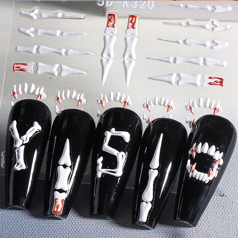 5D Halloween Nail Art Stickers Decals Horror Bone Ghost Embossed Design Nail Charms for Women Girls Manicure Tips Decorations