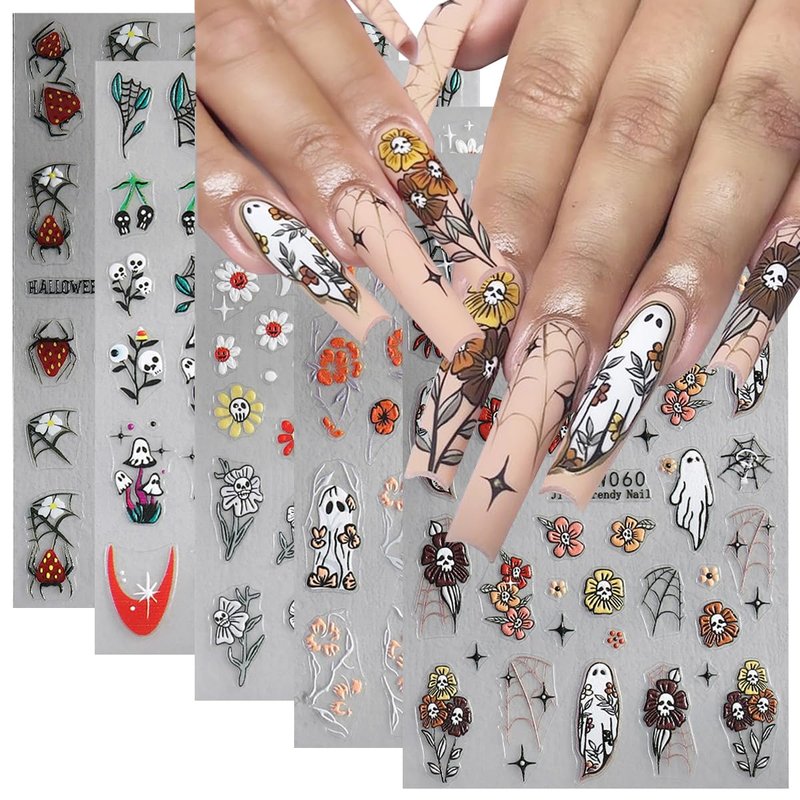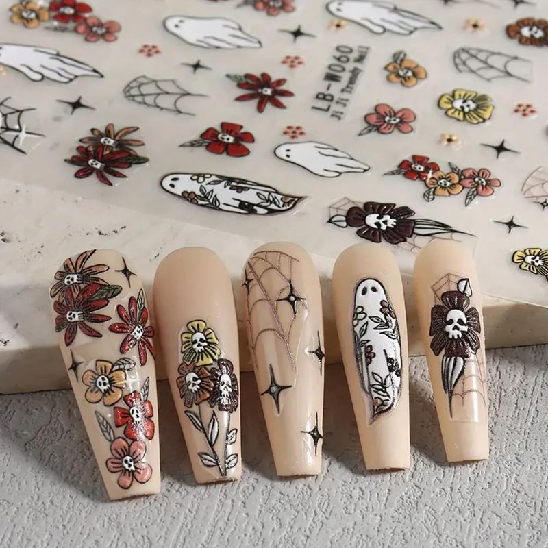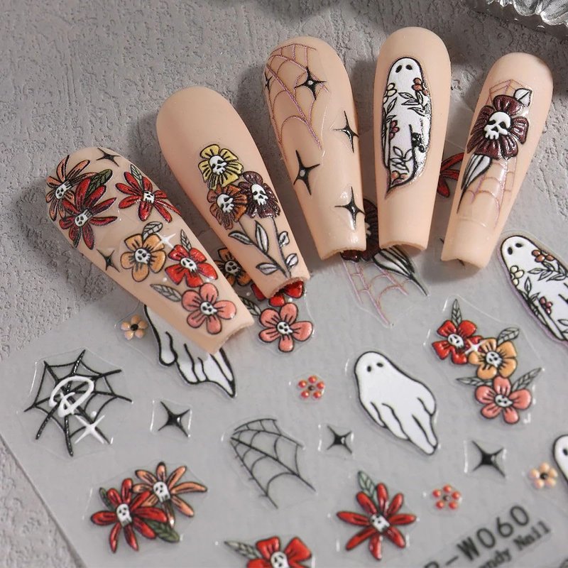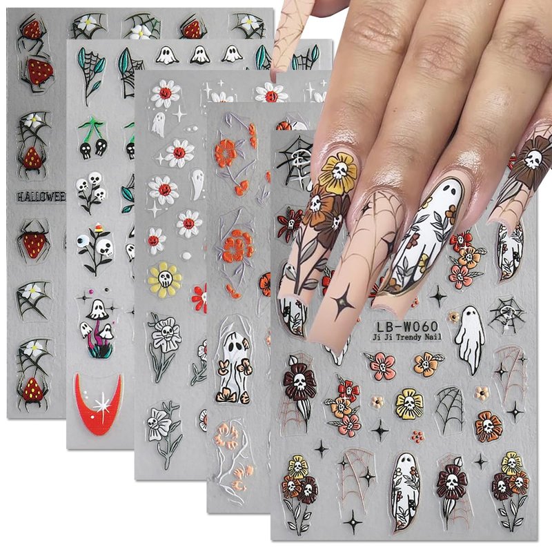 - Halloween Nail Designs: 5D self-adhesive ghost nail stickers will be the best gift for your female friends, your mom, and your wife. French nail stickers are perfect for home nail DIY and professional nail salon.
