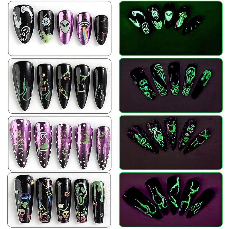 - 🎃 Glow in the Dark: These Halloween nail stickers are different during the day and night, and glow in the dark to make your nails look cool and make you stand out from the crowd. (After strong light exposure, the luminous effect of nail stickers will be more obvious)