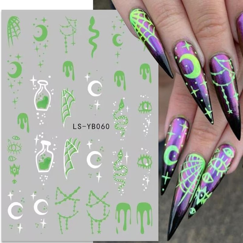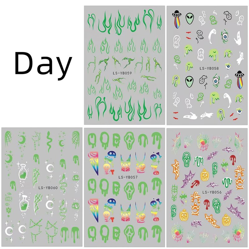 This set of Halloween nail stickers can showcase different nail art effects when used separately during the day and night, making it particularly suitable for nail design during Halloween parties.