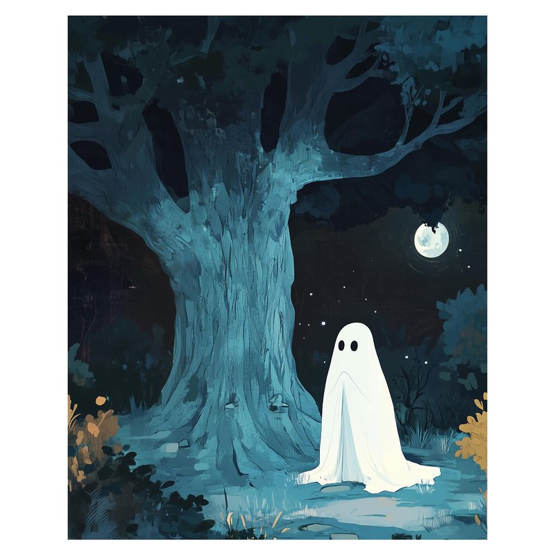 Halloween Paint by Number, Ghost Praying Paint by Numbers Kit for Adult Beginner, Ghosts Under The Tree DIY Oil Painting on Canvas for Gift Home Wall Decor - Moon Night(16x20inch, No Frame)