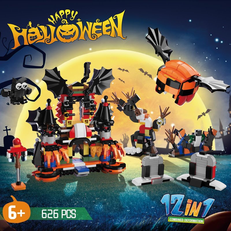 - [Halloween Party Favors] - Halloween castle is made up of 626 pieces blocks and comes packaged in an exquisite independent box. The unique 12 in 1 design can be used as both a party favor or as a candy substitute for every child who knocks on the door