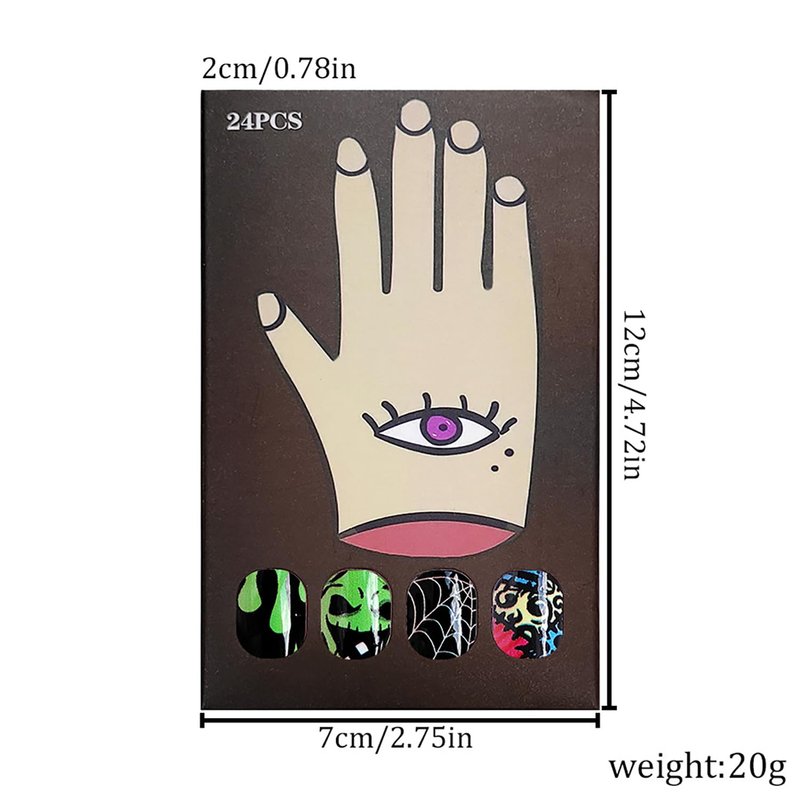 - 【Package Includes】 24 pieces Halloween fake nails, 1 sheet of 24 pieces jelly glue, 1 piece of mini nail file, 1 piece of wooden stick and 1 piece alcohol pads. Crafted from durable acrylic, enjoy long-lasting use without worrying about chipping or fading.