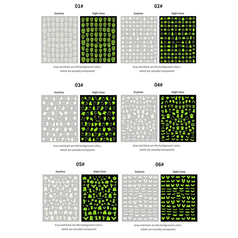- Packaging: you will get 6 Halloween themed nail art stickers, including skeletons, ghosts, pumpkins, bats and other Halloween elements.