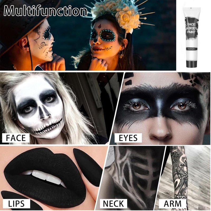 Halloween White Face Body Paint,Clown White Makeup Tube,Washable White Face Paint For Halloween SFX Skull Joker Zombie Vampire Skeleton Goth Cosplay Makeup