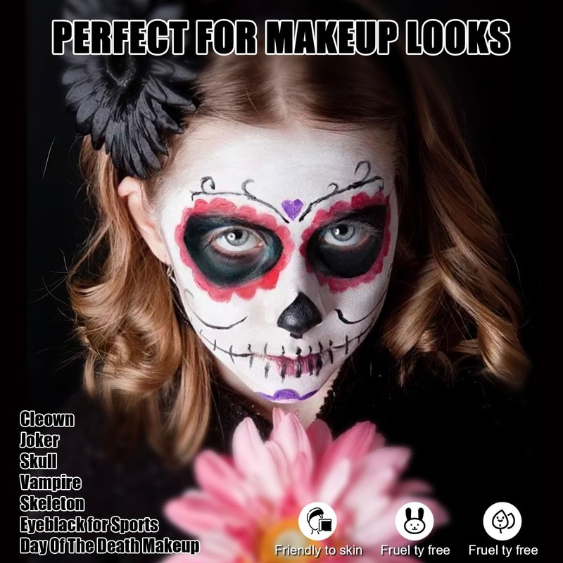 - Safe and Non-toxic:Infused with gentle and safe formula, face body paint Cream is not only highly pigmented, but also includes ingredients that are nourishing for the skin. These vegan ingredients help to soothe and hydrate the skin which makes it ideal for sensitive skin.Notice:As with all cosmetics we advise that a small skin patch test is done before applying as everyone's skin is different