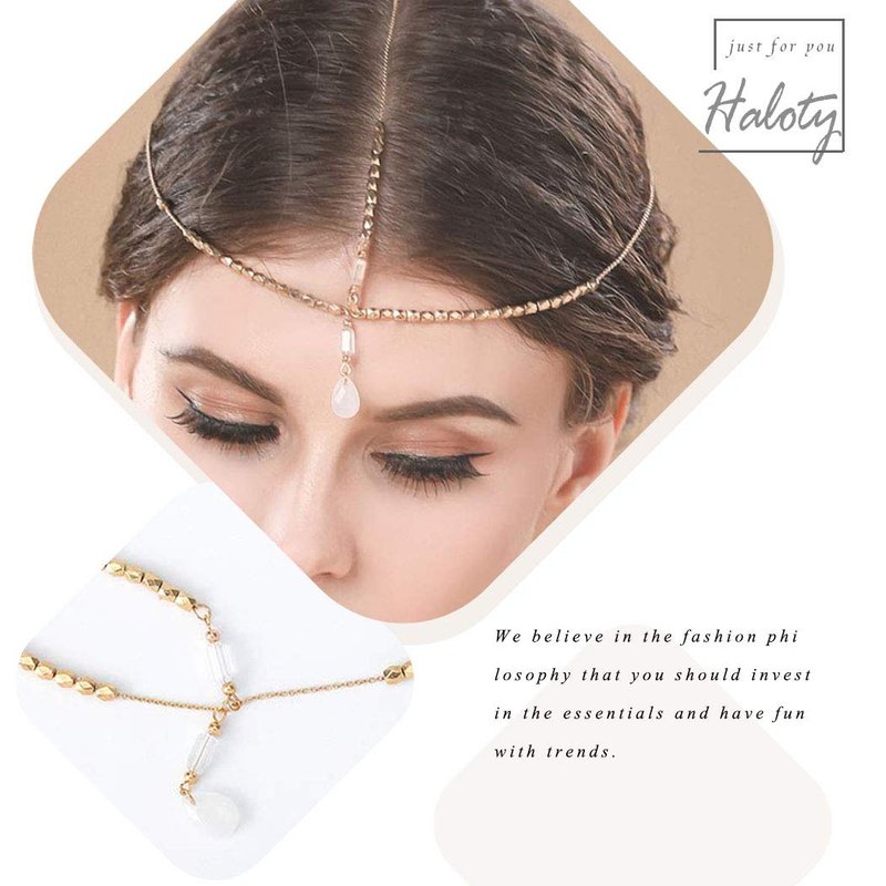 - Gold headchain total length approx 17.72inches, one size fits most people; You can adjust the length to suit your hairstyle; Fits anyone head and easy to put on.