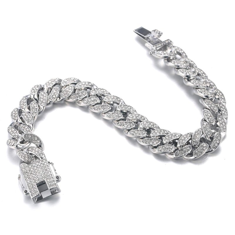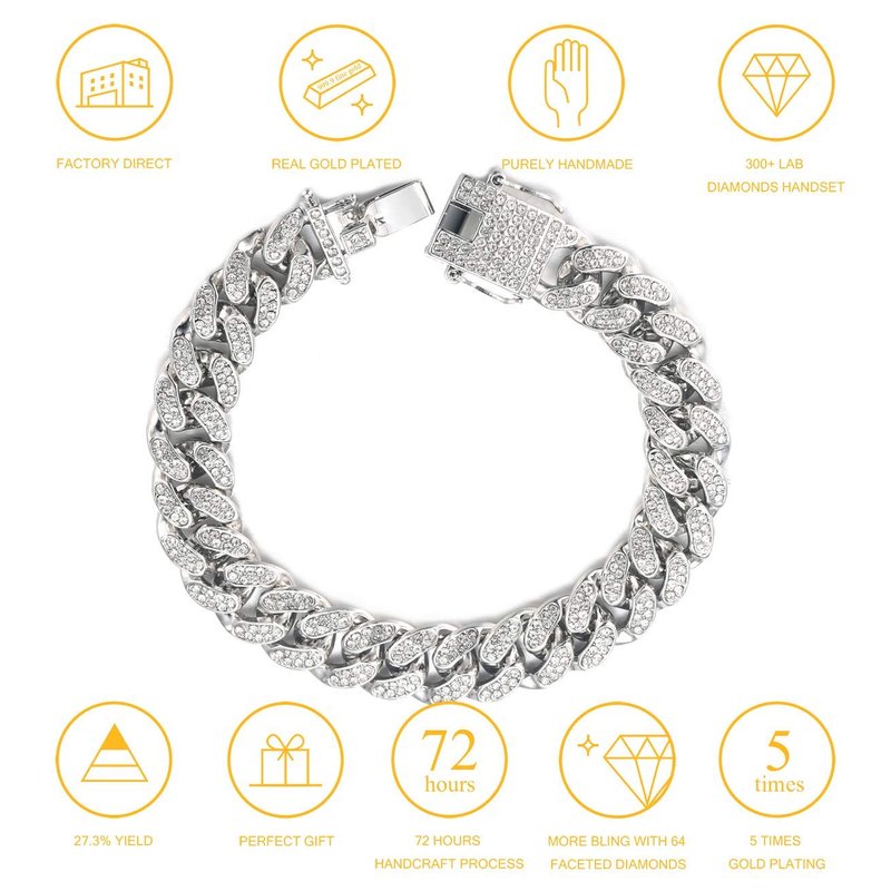 Halukakah Gold Chain Iced Out for Men,Men's 14MM Miami Cuban Link Chain Bracelet 7In(18cm) Platinum White Gold Finish,Full Cz Diamond Cut Prong Set,Gift for Him