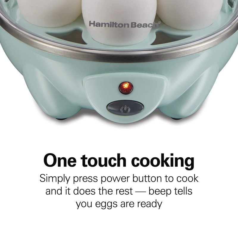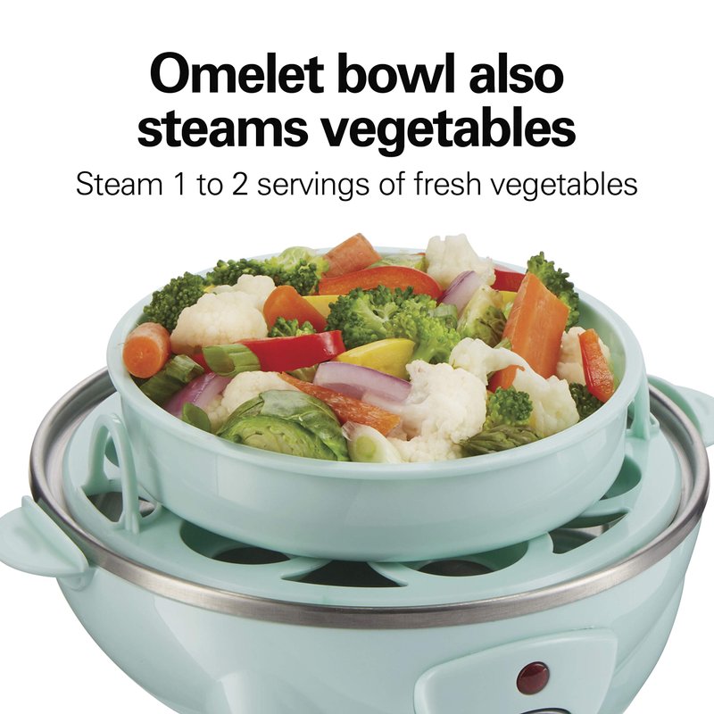 Hamilton Beach 3-in-1 Electric Egg Cooker for Hard Boiled Eggs, Poacher, Omelet Maker & Vegetable Steamer, Holds 7, Mint (25504)