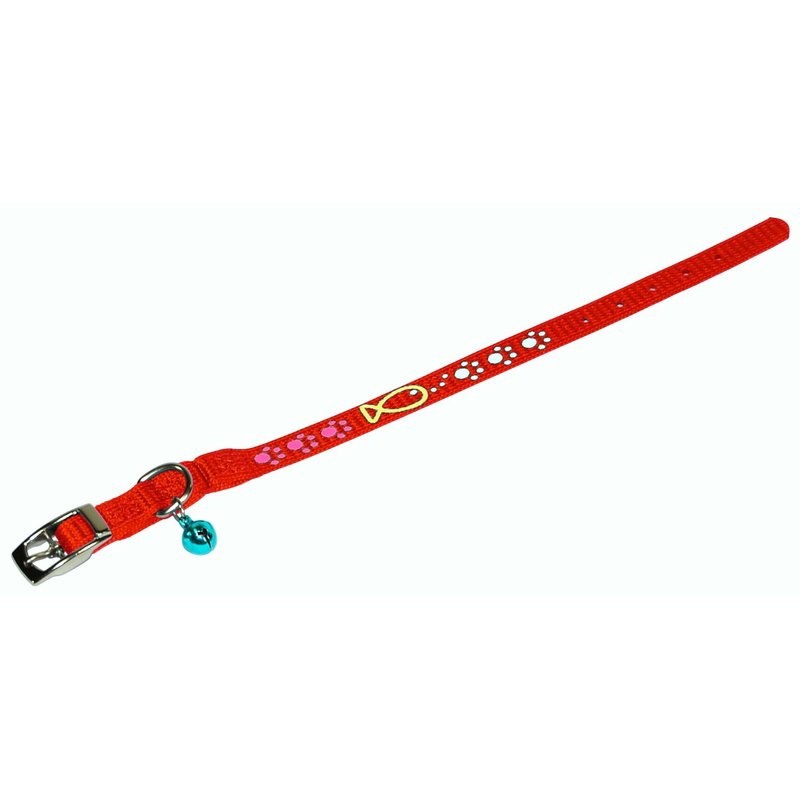 Hamilton Safety Cat Collar with Bell and Cat Fish Paw Design, 3/8 by 14-Inch, Red Nylon