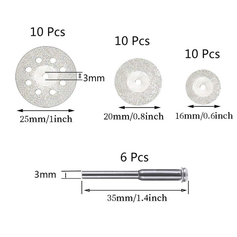 - Cutting discs diameter: 25mm/20mm/16mm; Mandrel Diameter:3.0mm.