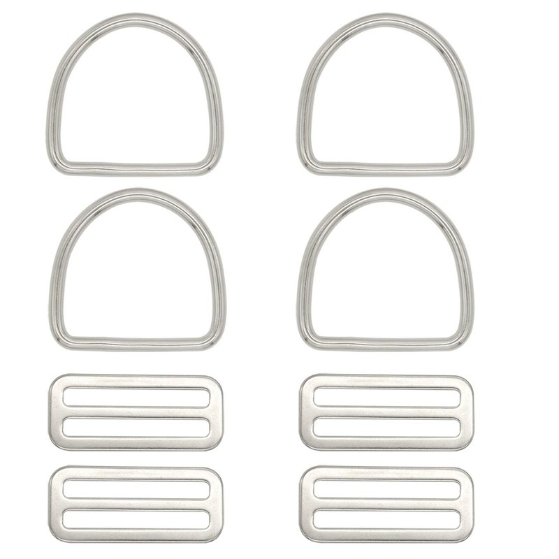 - Package includes: 4 Pcs Stainless Steel Slide Buckle Adjuster Sliders ,4 Pcs Stainless Steel Welded D Rings