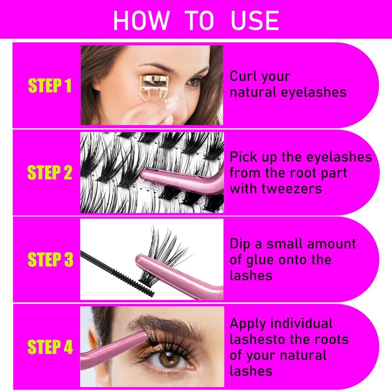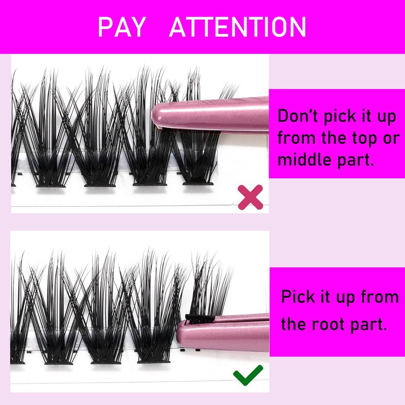 - You can DIY eyelashes at home, the effect is gorgeous, eyelashes are not easy to fall apart. Take less time to complete each eye. Now it saves a lot of money and time. Use tweezers to tighten the lash lash band and apply the lash lash under the natural lashes. You can hardly feel the thick eyelashes. The bottom of the cluster is flat and hardly noticeable. When you blink, the lash band does not Pierce the area of your eyelid. Give you the perfect experience when applying eyelashes.