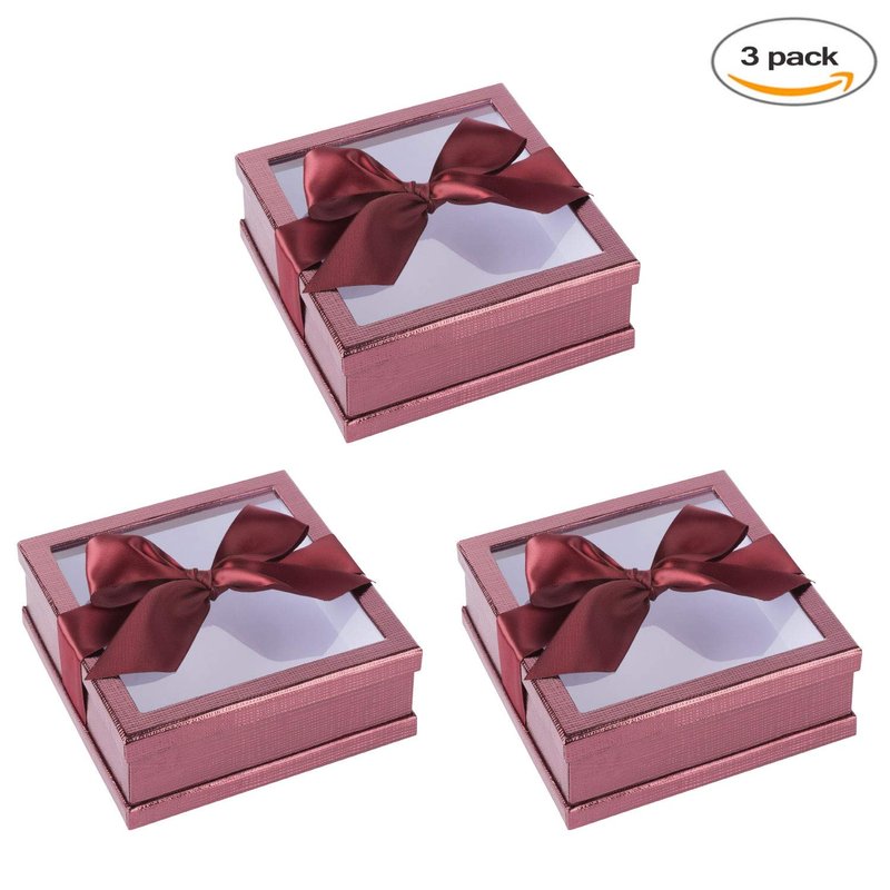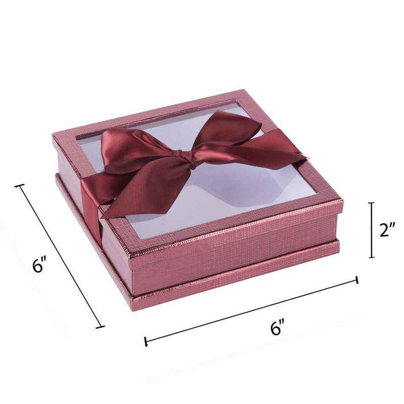 - PACKAGE CONTAINS: Set of 3 window boxes with ribbon have dimensions of 6” x 6” x 2”; these party favors candy boxes are also available in four different colors along with clear window and matching ribbon, which is perfect and ready to gift you loves ones