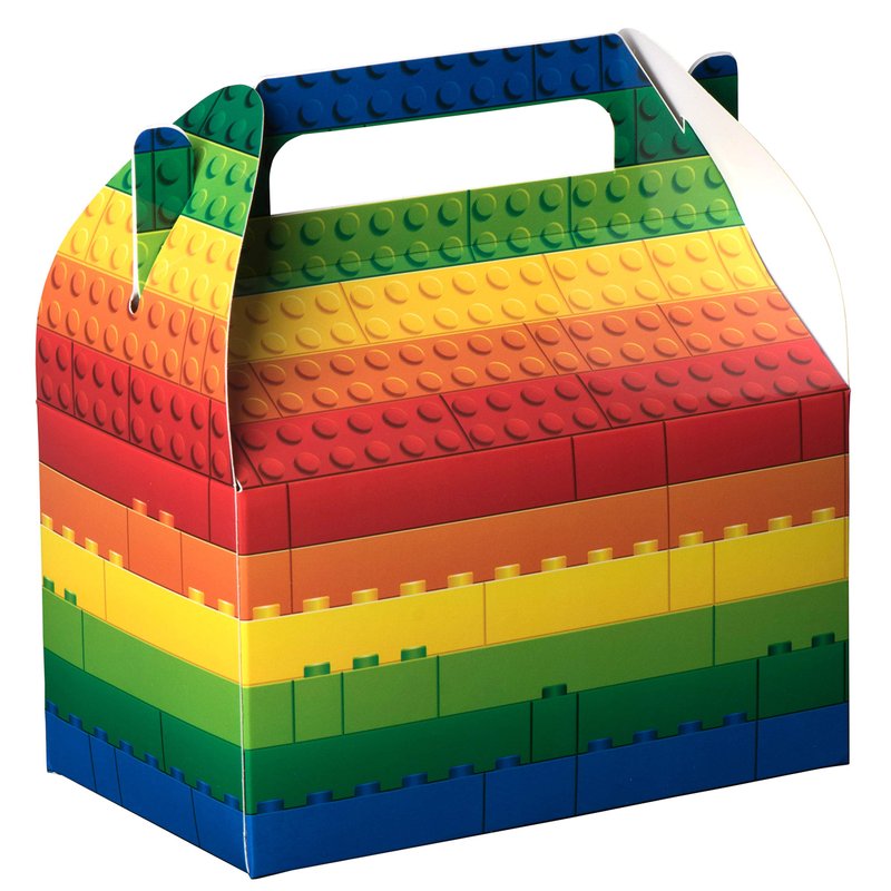 Hammont Paper Treat Boxes - (10 Pack) - Party Favors Treat Container Cookie Boxes Cute Designs Perfect for Parties and Celebrations 6.25" x 3.75" x 3.5" (Brick Toy)