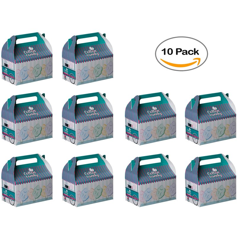 Hammont Paper Treat Boxes - (10 Pack) - Party Favors Treat Container Cookie Boxes Cute Designs Perfect for Parties and Celebrations 6.25" x 3.75" x 3.5" (Cotton Candy)
