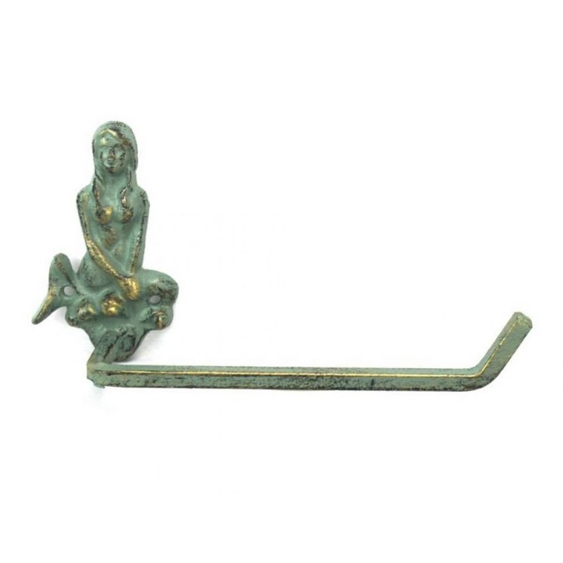 Hampton Nautical Antique Bronze Cast Iron Mermaid Toilet Paper Holder 10" Bathroom Beach Home Decorating, Green