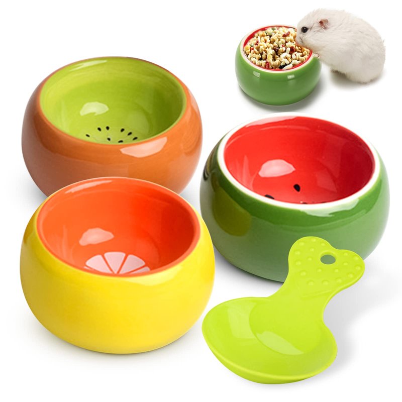 - 💓Exquisite: Stoneware Hamster Bowl kinds of fruit patterns: (kiwi appearance + watermelon appearance+grapefruit look) beautiful and lovely. The high-value Stoneware Hamster Bowl is accompanied by cute animals. This will be the perfect match.
